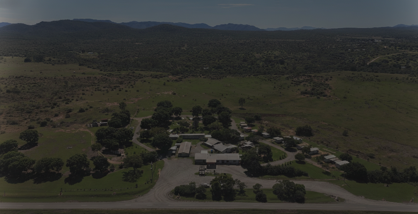 Aerial View of Rural Caravan Park and Campground Surrounded by Lush Countryside with overlay