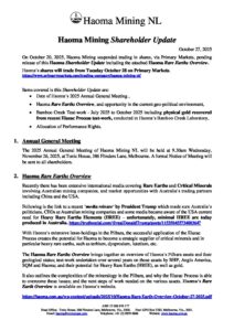 Haoma Mining NL – Shareholder Update October 27 2025